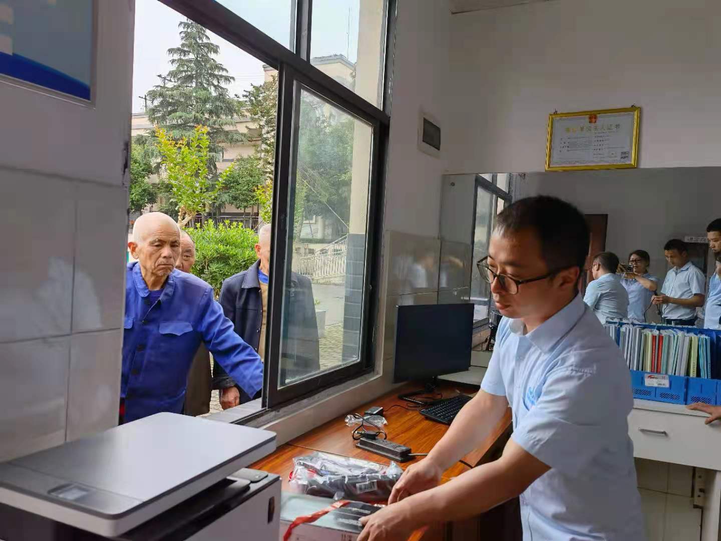 公司領導親自把慰問品送到每一位老人手裏,組裝好各種設備,親切慰問了每一位老人
